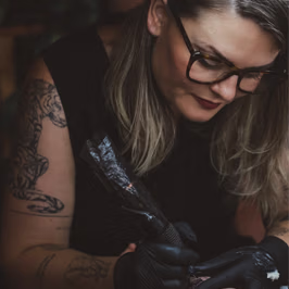 Começou como um impulso, um instinto e depressa se tornou na minha missão. Hoje, entro todos os dias no estúdio com um sorriso no rosto, pronta para eternizar histórias na pele de quem confia em mim.